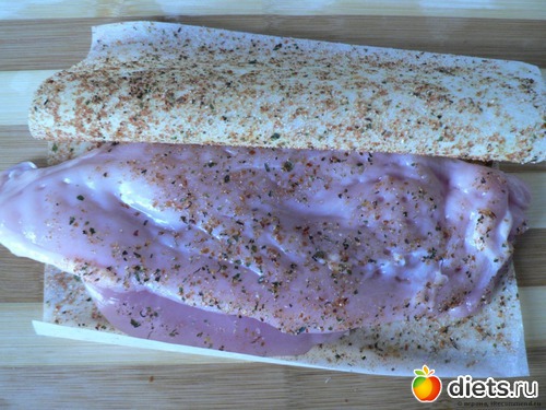 а я просто мариную куриное филе в чайной ложке соуса, приправа, прованские травы, кефир мариную час, и тоже выкладываю на пергамент и жарю с обеих сторон.