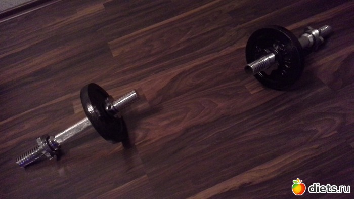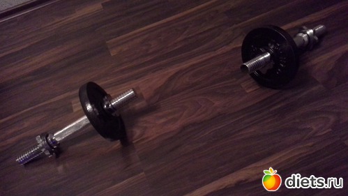 Здравствуйте, гантельки, давайте, вылезайте из дивана, стряхиваем пыль и за работу. Начала с 10 кг, дабы не помирать завтра. Уже между лопаток мышцы ожили, они всегда на становую откликаются.