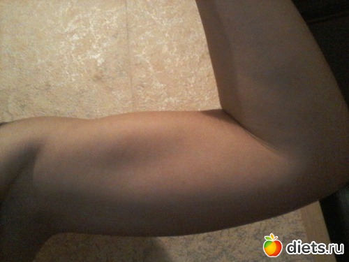 В прошлый раз начинала тренироваться с абсолютно гладкими руками, как цилиндрики мягонькие, никаких намеков на мышцы. А тут что-то, вроде, есть. Возможно потому, что не похудела, а поправилась на кг с тех времен. Т.е. как бы не пожгла мышцы.
