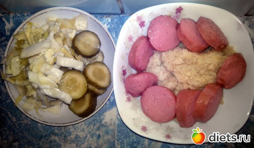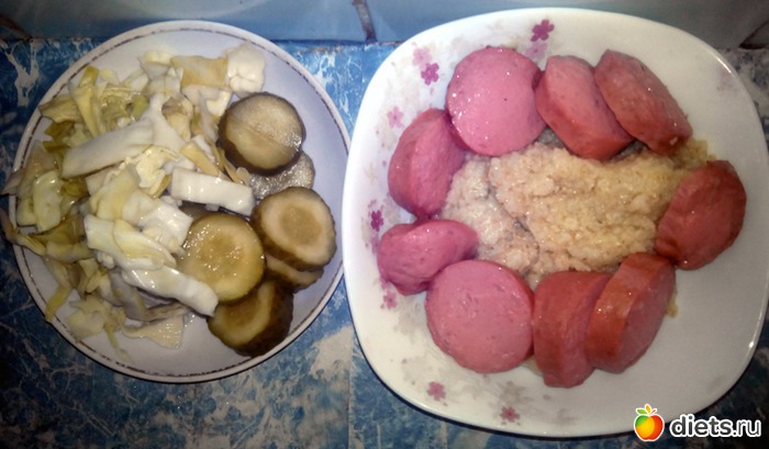 Маринованная капуста, соленый огурец, пшеничная каша и... САРДЕЛЬКА!!! Вот такой я сегодня преступник! На самом деле выбирать было не из чего.
