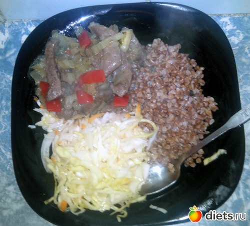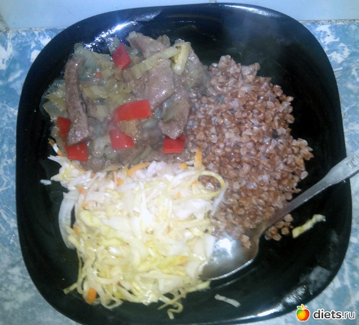 Квашеная капуста (покупная, правда, но вполне и вполне). Гречка и печенка.