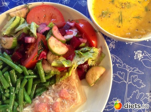 Еще один минималистичный денек: 600 ккал. Которые заставляют задуматься: может, мне столько и надо? Потому что именно на таком рационе я успеваю чуть-чуть проголодаться от еды к еде. Представляю, как сейчас испугаются те, кто считает, что за 1500 ккал выходить нельзя Сегодня рацион выглядел так. Завтрак - рисовая молочная каша с ложкой малинового варенья, грейпфрутовый сок и кофе...