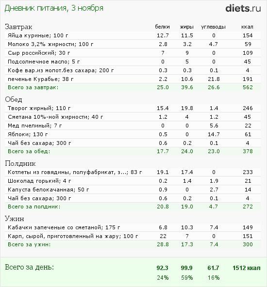 Решила попробовать посчитать калории, никогда этого не делала, но почитав дневники девочек, которые хорошо сбросили, решила что все-таки надо и мне заняться, сегодня в первый раз занесла все съеденное в дневник