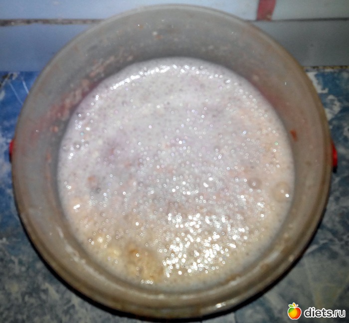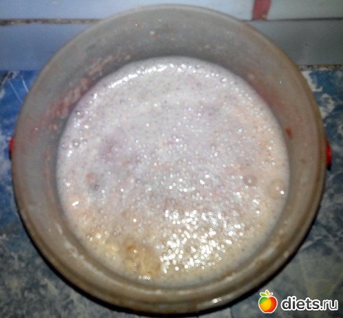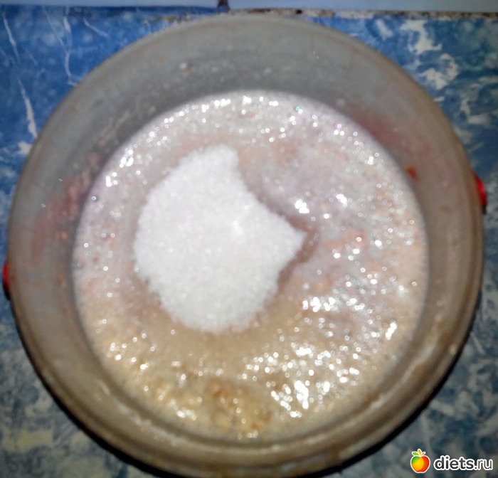 Где-то еще через час, когда закваска начала активничать, я добавил в нее столовую ложку сахара