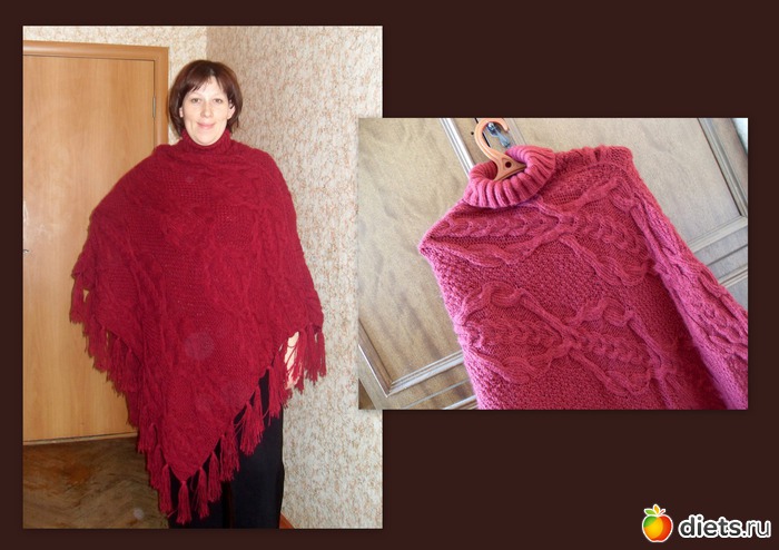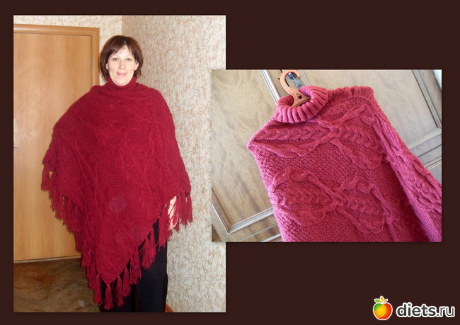Пончо с аранами Очень мне понравился узор, но сама модель в журнале не нравилась. Сначала хотела связать прямоугольное пончо из двух частей, но в процессе вязки передумала.