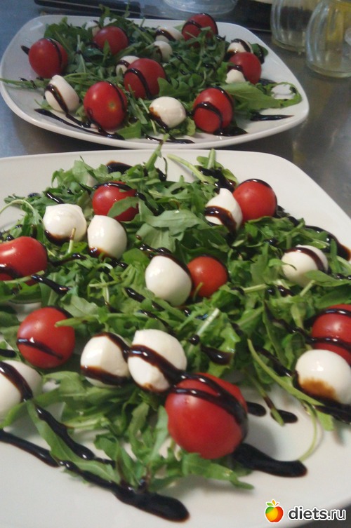 Польза руколы огромна, в ее зеленых листьях, похожих внешне на листья одуванчика, содержится целый перечень витаминов, микроэлементов и ценных питательных веществ. Польза сыра моцарелла, как и других молочных продуктов, очевидна для здоровья человека. Так, например, в связи с высоким содержанием фосфора и кальция его рекомендуют для питания детям после 3 лет, а также беременным и кормящим мамочкам.