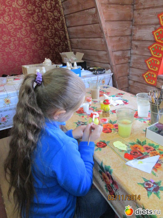 Интерактивная лекция длиться минут 15, есть мастер-класс по росписи игрушек на 2-ом этаже. И это не просто "а теперь мы закрашиваем" или " а теперь мы рисуем". Тут учат как правильно брать краску, как давить на кисть. В общем, там работают люди - преданные своей работе.