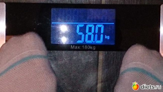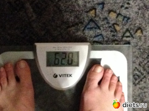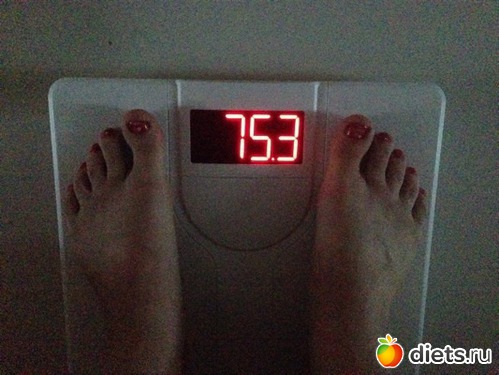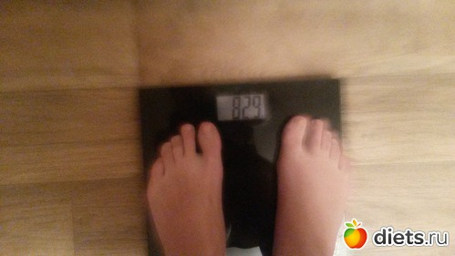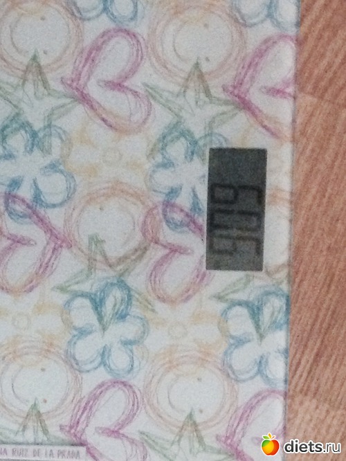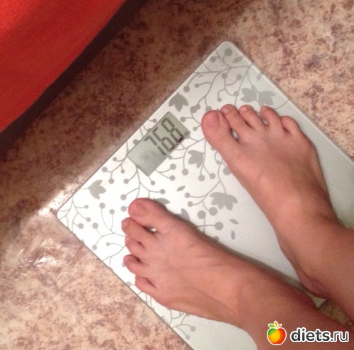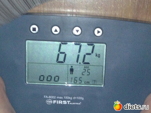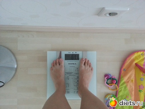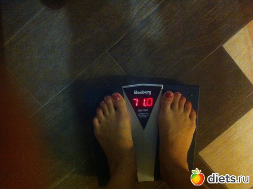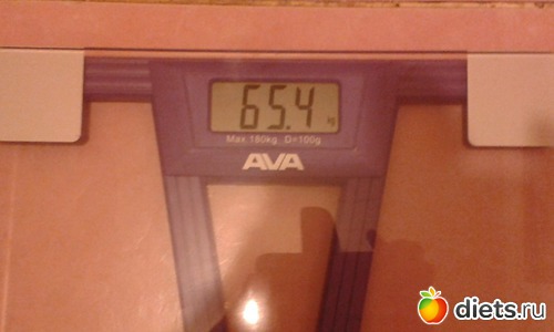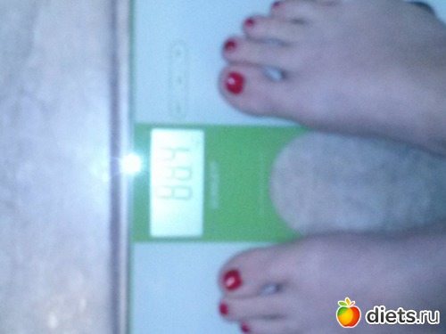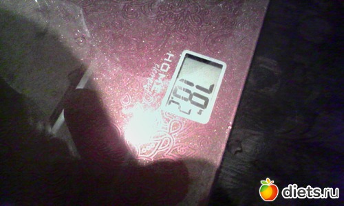 Утром взвесилась, но сфоткаться забыла, пришлось вечером фоткать весы, цифры больше, чем с утра...да и праздники дали о себе знать))) косячила