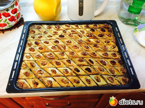 ерез 10 минут выключаем духовку, открываем дверцу и оставляем пахлаву остывать в ней, можно и до утра. Нарезаем – и раскладываем.