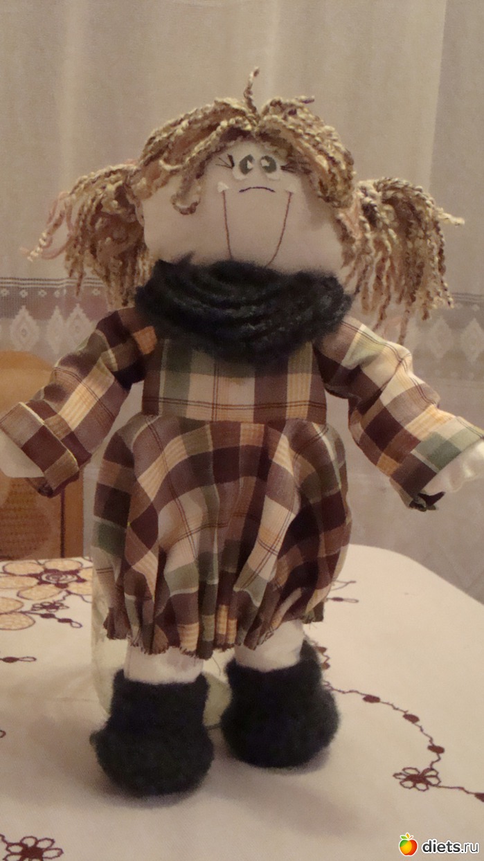 Кукла Малена Вот эта чудная кукла создана моими руками. Она сшита с любовью. Основа - натуральные ткани, набита синтипоном. Внутри проволочный каркас. Носочки вязанные. В полный рост 35 см. Ссылка на продажу https://www.diets.ru/board/view/135258/.