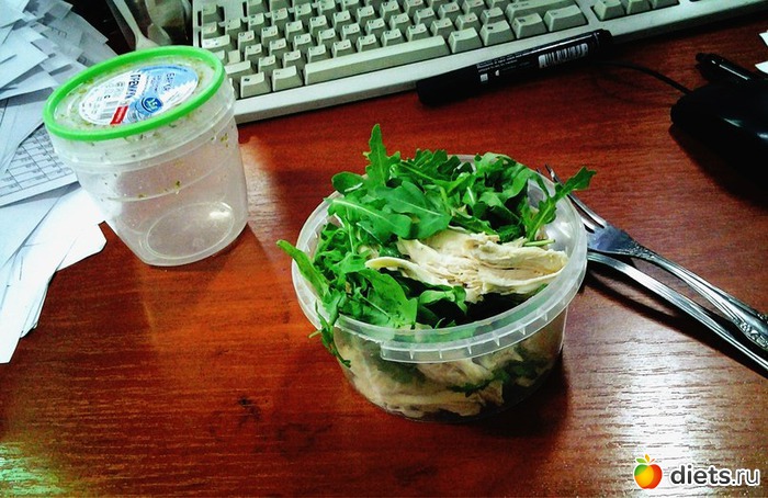 Пятничная суматоха отшибла память. Обед: сельдереевый суп (уже схомячен) и грудка куриная с рукколой.