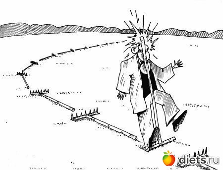 Едет скорая, в машине на переднем сидении сидят водила и санитар, сзади - врачиха с практикантом. Останавливаются на перекрестке, тут водила хватает себя за горло, начинает хрипеть и пучить глаза. Врачиха ему бац по башке саквояжем, тот отошел, едут дальше. На следующем перекрестке такой же приступ случается у санитара, опять "лечение" саквояжем по голове, и все ок. Практикант, ничего не понимая, спрашивает у врачихи: