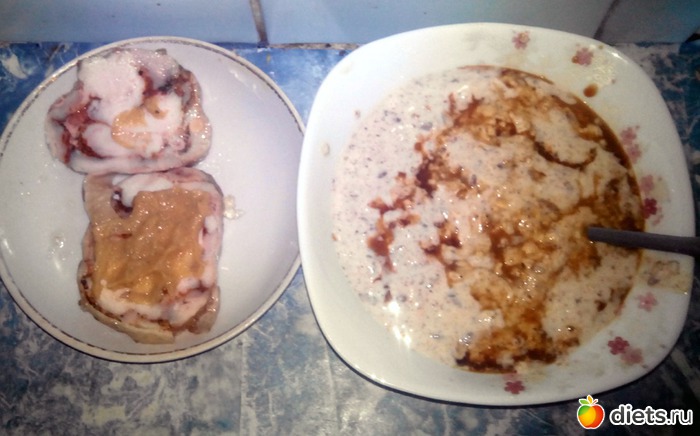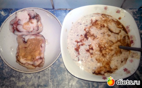 Еще вчера я решил кое-что поменять и завтрак стал первой жертвой. Вчера, перед сном, я насыпал в баночку столовую ложку геркулеса, добавил некоторое количество льняного семени и залил их ряженкой - сто грамм. Ночь она простояла и утром вкусняшка (для меня - вкусняшка!) была готова. Я добавил туда пару чайных ложек соевого соуса. Будь у меня зелень, то добавил бы и зелени. Плюс пару кусочков рулета, смазанных доморощенной горчицей.