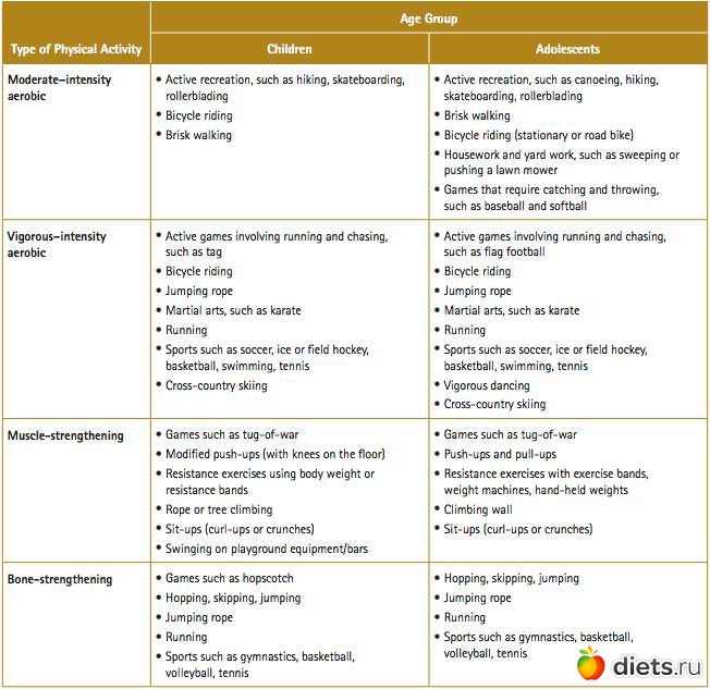 Рекомендации центров по контролю и профилактике заболеваний США (Centers for Disease Control and Prevention, CDC) (http://www.cdc.gov/physicalactivity/everyone/guidelines/index.html?s_cid=govD_dnpao_004)