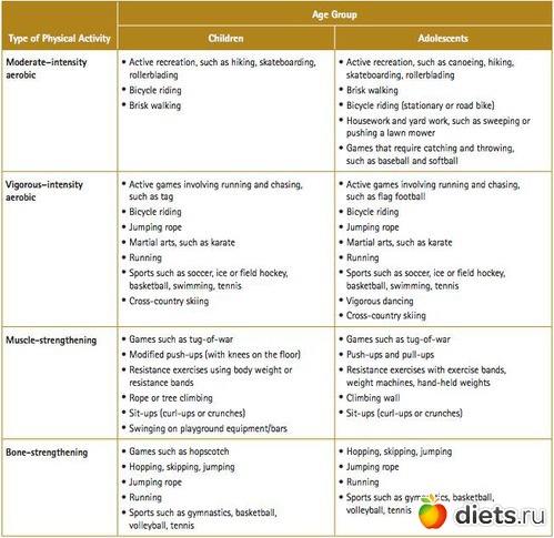 (я позже, возможно, сделаю выжимку конкретно по этому гайду - тут упражнения делятся на аэробные, для укрепления мышц и укрепления костной системы - прим. Belle_Amor).