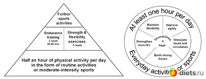 Швейцарские рекомендации (http://www.sgsm.ch/fileadmin/user_upload/Zeitschrift/60-2012-3/03-2012_1_Kahlmeier.pdf) содержат еще один пример инфографики по необходимому объему физических активностей: