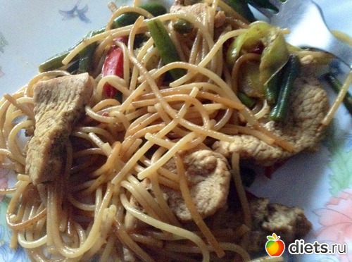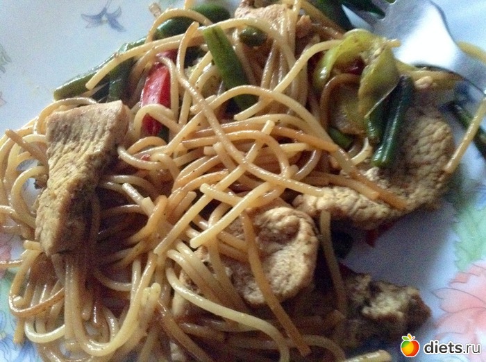 Пообедала постным борщом и вот такими макарошками с индейкой, фасолью и перцем: