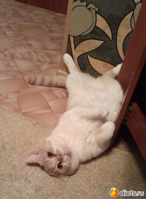 а мой вот в такой позе дрыхнет, хорошо хоть предпочитает пол, а то эту тушу не сдвинуть