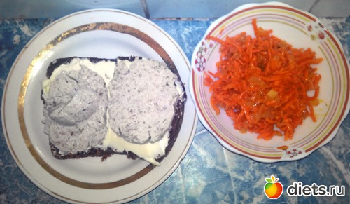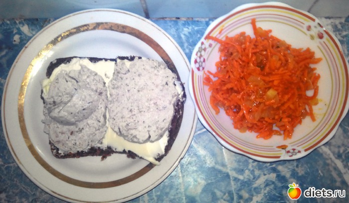 Классика жанра! Бутеры с маслом и колбасой (день вредностей!) и морковка по-корейски.