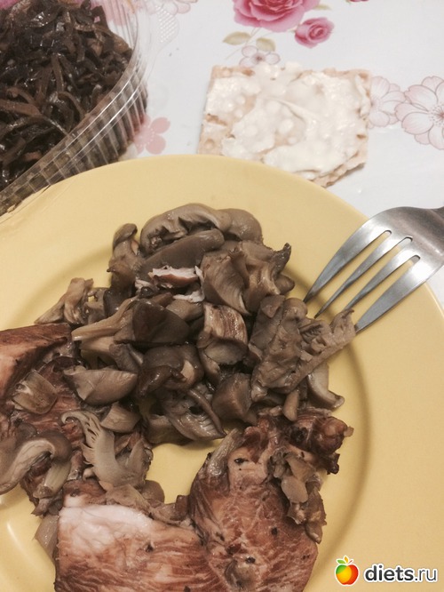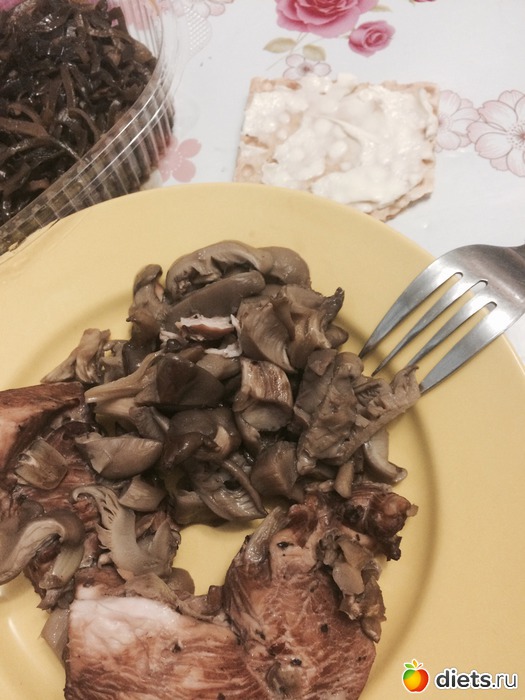 Грудка запеченная с грибами+морская капуста+кофемолоко+зефирка