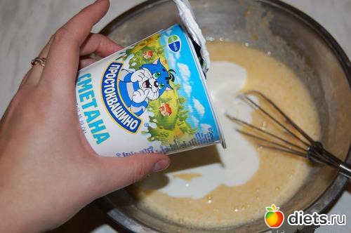 смазиваем подсолнечным маслом и ложим ложкой тесто