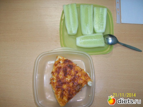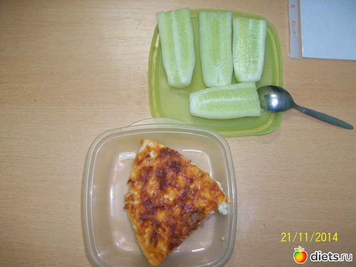Обед как всегда на работе и опять запеканка, но компанию в этот раз ей составил свежий огурец
