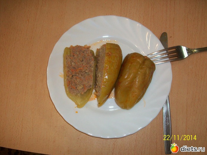 Обед так же радостно встретил только приготовленными в мультиварке фаршированными перцами с куриным фаршем и бурым рисом