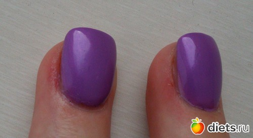 На втором пальце на фото видно, что закрепитель нанесен не на весь лак, а лак немного посветлел, где нет закрепителя. Но я списала это на то, что я мазала ногти маслами, кремами, мазью. Вы это имеете в виду под неаккуратностью?