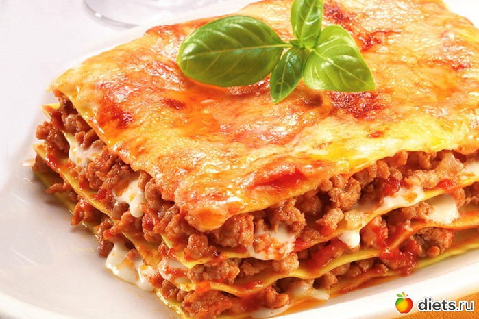 Выложить пласты (не вареные). На пласты выложить получившийся фарш (не жалеем!), на фарш — натертый сыр. На сыр — соус болоньезе. Соуса нужно выкладывать столько, сколько необходимо, на ваш взгляд, чтобы лазанья получилась сочной. Поверх соуса выложить сухие листы лазаньи. Повторить процедуру. Последний слой листов промазать соусом болоньезе и сверху щедро засыпать сыром. Дать постоять минут 7–10.