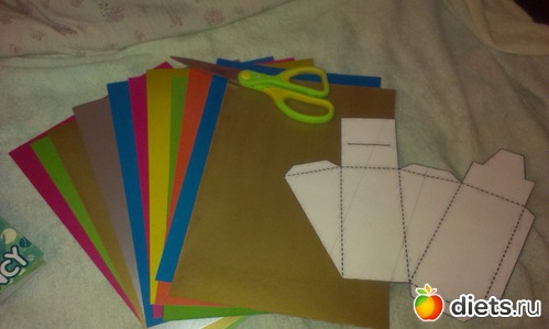 потом по линейке сгибали и клеили ПВА. (без линейки неровно и некрасиво)