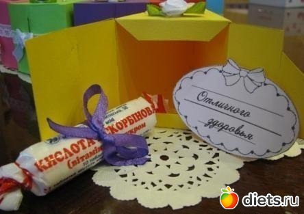 11. Здоровья. В подарок-аскорбинка. Задание-присесть три раза. хотели сначала 30 раз заставить, по количеству лет