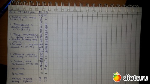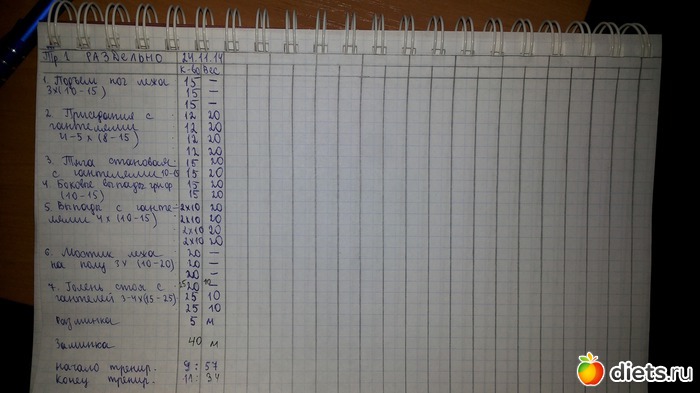 Силовая тренировка 45 минут. Сегодня раздельная тренировка на низ тела. Вот фото моего тренировочного дневника: