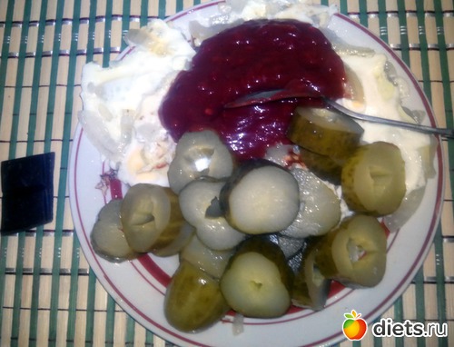 Не удивляйтесь и не возмущайтесь сегодняшнему обилию маринованных огурцов. Дело в том, что совпало состояние "три дня до зарплаты" и минус двадцать восемь за бортом. И потому из овощей у меня остались маринованные огурцы, которые ко времени написания отчета уже кончились. Немного пекинки, лук и морковь. Еще некоторое количество квашеной капусты.