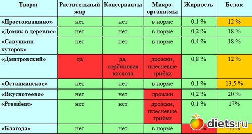 В твороге трех торговых марок эксперты обнаружили большое количество дрожжевых и плесневых грибков. В твороге «President», самом дорогом среди протестированных, количество плесневых грибков превышает допустимый норматив в 200 раз! В твороге «Вкуснотеево» слишком много дрожжей. Третий нарушитель — «Дмитровский»: в нем плесневых грибков в 14 раз больше нормы, а дрожжей — в 53 раза. Видимо, мало консерванта в него положили...