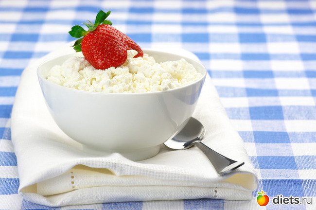 Обезжиренный творог— один из самых популярных продуктов для тех, кто худеет. Его калорийность — всего 70 кКал, при этом в нем содержится много белка, поэтому особенно часто он используется в белковых диетах — по Дюкану, по Аткинсу, в «Кремлевской» диете. Белок творога легко усваивается организмом, гораздо легче, чем белок мяса, например. Также творог считается полезным из-за высокого содержания кальция.