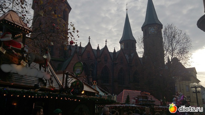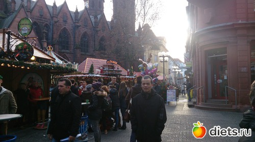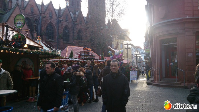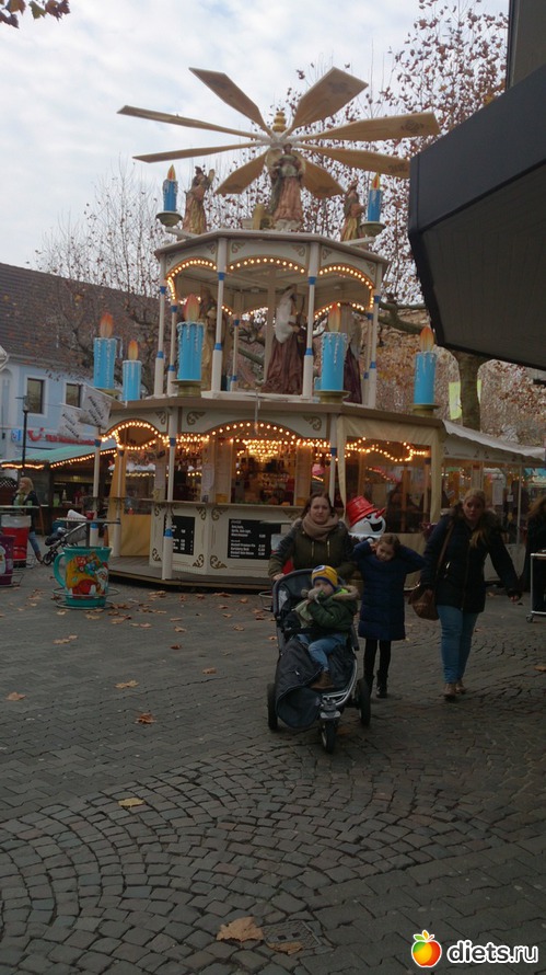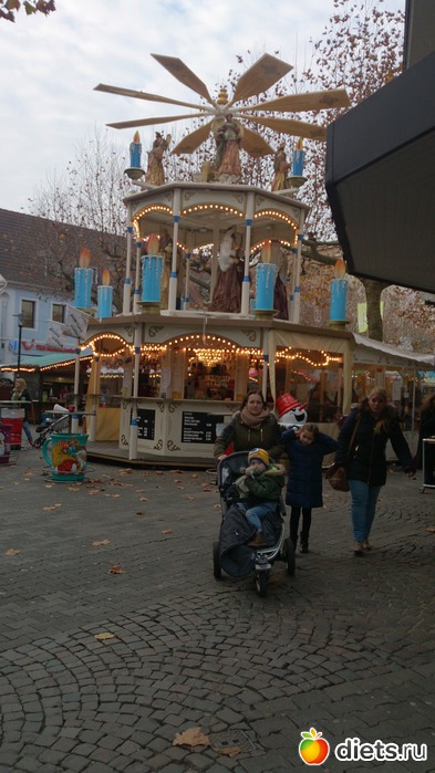 Потом прошлись вместе все по ярмарке, оказалось, что там она уже открылась, много ларьков с разными традиционными вкусностями (жареные орешки разные, пироги - лебкухены). Один прикупила родителям. Выпила чашечку вкуснейшего клубничного глинтвейна. Можно было чашку с собой забрать, но решила, что мы все равно собираемся ехать в Трир или Хайдельберг и чашку там лучше схвачу, поэтому ту вернула. А по приезду поняла, что никуда мы не поедем, в почтовом ящике лежало письмо с доплатой немалой за свет-газ