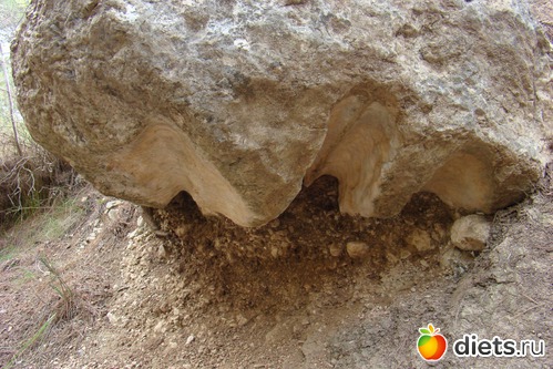 Вот собственно и след динозавра, отпечаток на камне, наши следопыты искали его оч.тщательно(по мне-так похож на след гигантской курицы, но не будем их разочаровывать).