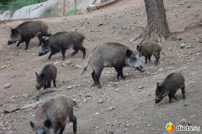 А вот и наши гости, которые спускаются к площадке для отдыха и во время обеда выпрашивают еду у туристов. Спустилось около 20 малявок с 4 мамами, пап не было видно. Почти как собачки ходят и попрошайничают, специально для ниx привезла мешочек моркови, но эти поросята в прямом смысле слова, предпочитают хлеб!!!
