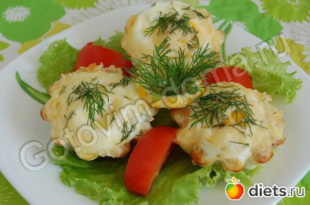 Формочки для кексов смазать сливочным маслом и выложить дно и стенки формочек куриным мясом, слегка посолить... Читать полностью