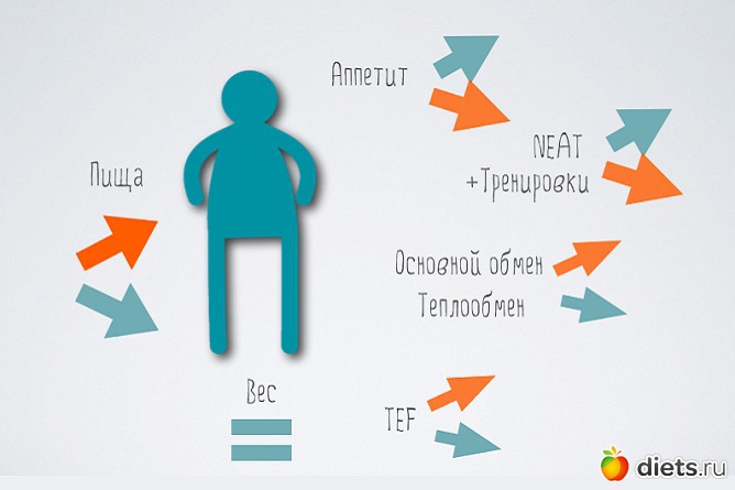 Для примера сбалансированной регуляции веса представим себе человека, у которого вес без его усилий не меняется последние 30 лет, а костюм с выпускного он использовал еще и на свадьбе и похоронах всех родственников, потому что процент жира его также не претерпевает особых перемен (хотя под костюмом некоторые перемены все же обнаруживаются).