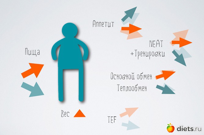 За счет чего обеспечивается такая стабильность? Если такой человек переедает в течение дня, то его аппетит может снизиться на несколько последующих дней, что он даже не заметит, потому что дискомфорта это не вызовет, он просто забудет поесть. Если по какой-то причине он будет переедать несколько дней или недель не обращая внимания на отсутствие аппетита, вероятнее всего у него вырастут также и траты энергии на термогенез (за счет повышенного TEF и некоторого повышения основного обмена), а также спонтанная двигательная активность. Если он даже наберет лишнего, то в ближайшем будущем скорее всего от этого легко избавится, в основном за счет умеренного снижения аппетита.
