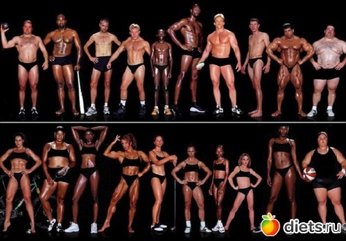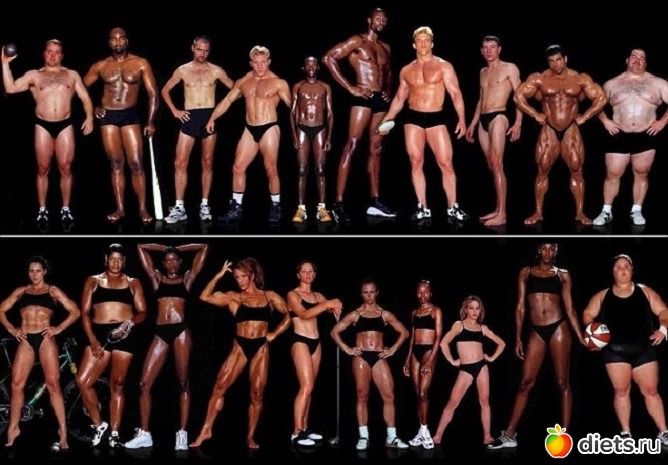 Здесь можно вспомнить типы спортивных фигур, хотя в этом вопросе дискутабельно, фигура это результат спорта, или склонность к определенной биомеханике, проценту мышц и жира, форме самих мышц позволяет пройти селекцию и попасть в топовые спортсмены, которых мы потом и ассоциируем с данным видом спорта.