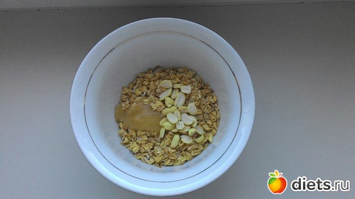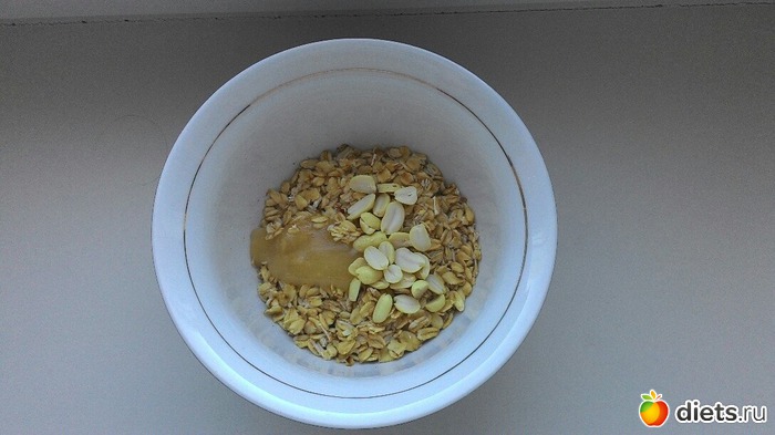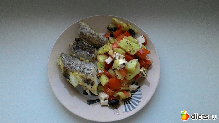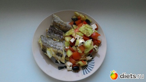 Овсянка + мед + орехи - это уже как минимум 500 ккал. Минтай и салат - нареканий нет.