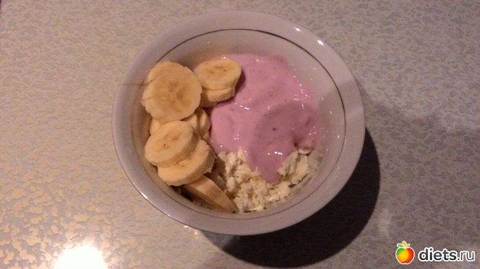 А вот банан + творог + какой-то фруктовый явно с сахаром йогурт - вызывают сомнения. Банан - быстрый углевод, в 1 шт около 100 ккал, йогурт с сахаром. Такой формат еды может быть уместным только на завтрак или второй завтрак.