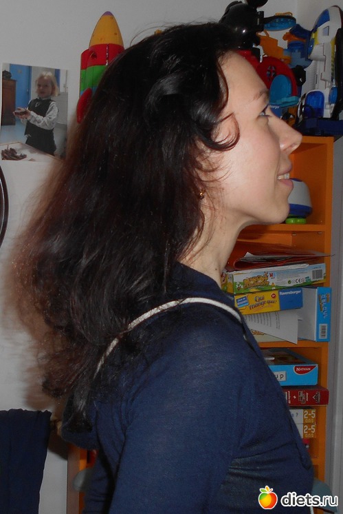 В целом, из позитивного, могу отметить, что лицо - твердое на ощупь, немножко пластиковая твердость, что приятно. Овал подтянут, в профиль это очень неплохо видно. Хорошо очерчена нижняя челюсть, впрочем там у меня и не намечалось проблем. Помните, вы писали, что подбородок зависит прежде всего от спины.