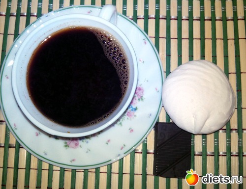 С зефириной и кусочоком шоколада. Уж не знаю почему, но кофе получился удивительно мягкий.