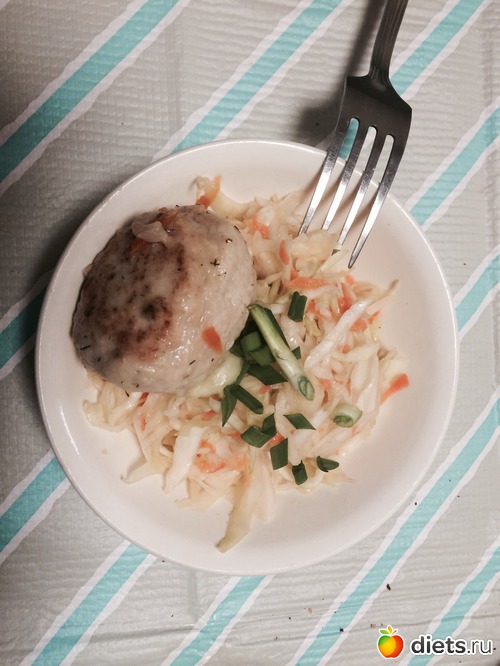 Завтрака не было, в 11.00 удалось съесть салатик из капусты и тефтельку