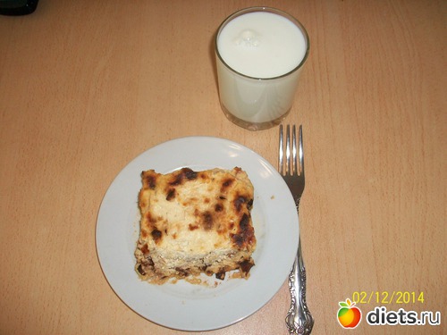 На ужин меня ждал последний кусочек творожной запеканки с яблоками и черносливом и стакан 1% кефира