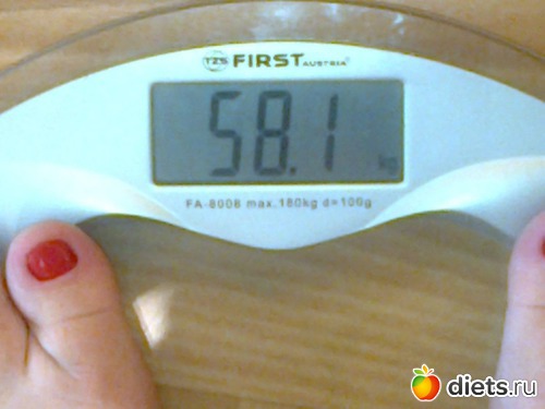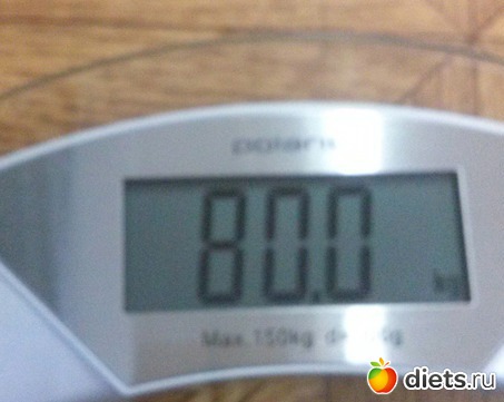 Мой вес на сегодня - 80, 5 кг. Фото сделала, не могу скинуть - села батарея у фотоаппарата. Поставила заряжаться, как только, сразу скину.