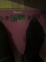 Есть отвесик! Може и маловато, но будем работать еще больше. На этой неделе почти не ходила на шейпинг - заболела. Сейчас активно лечусь и бегом в спортзал